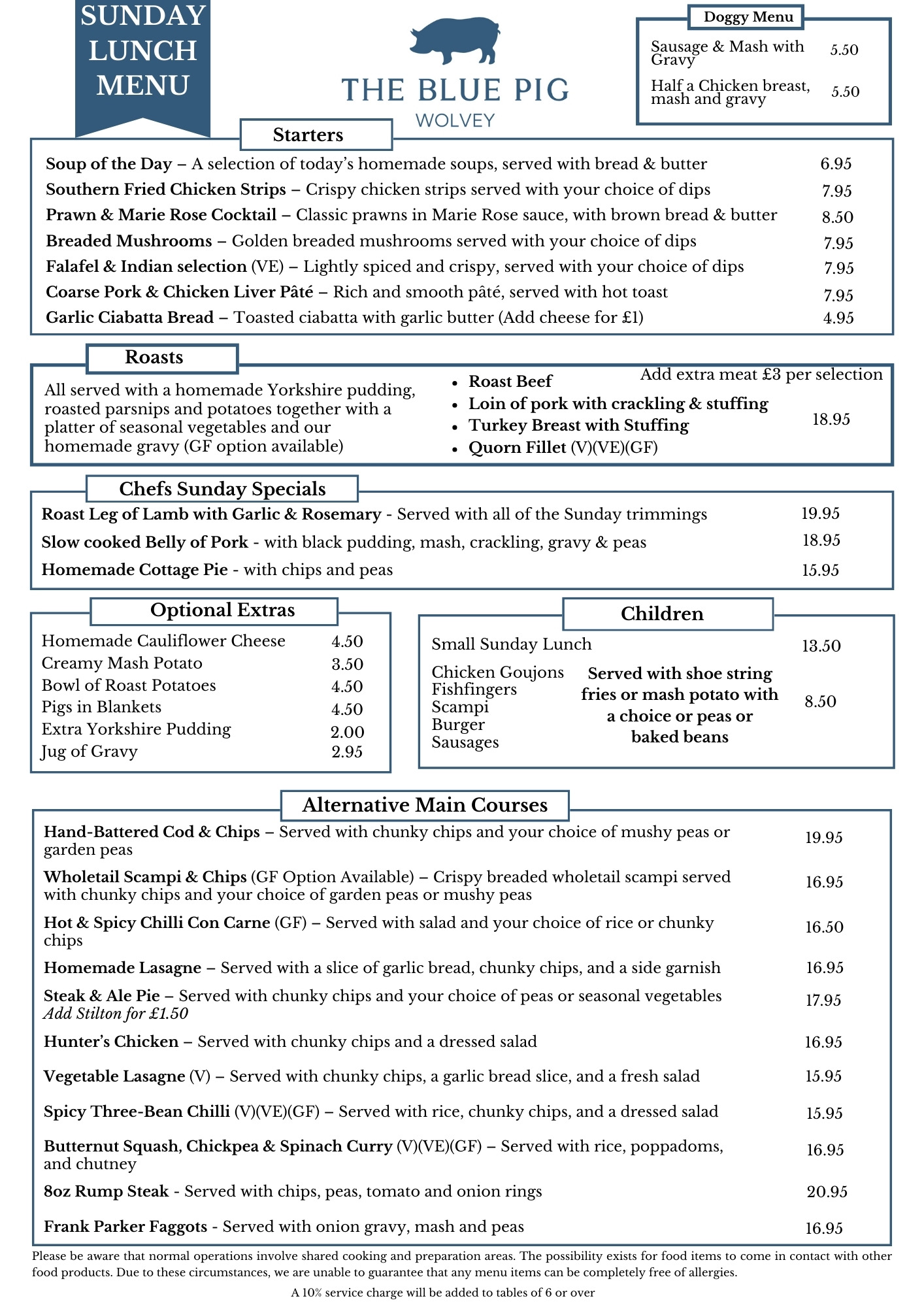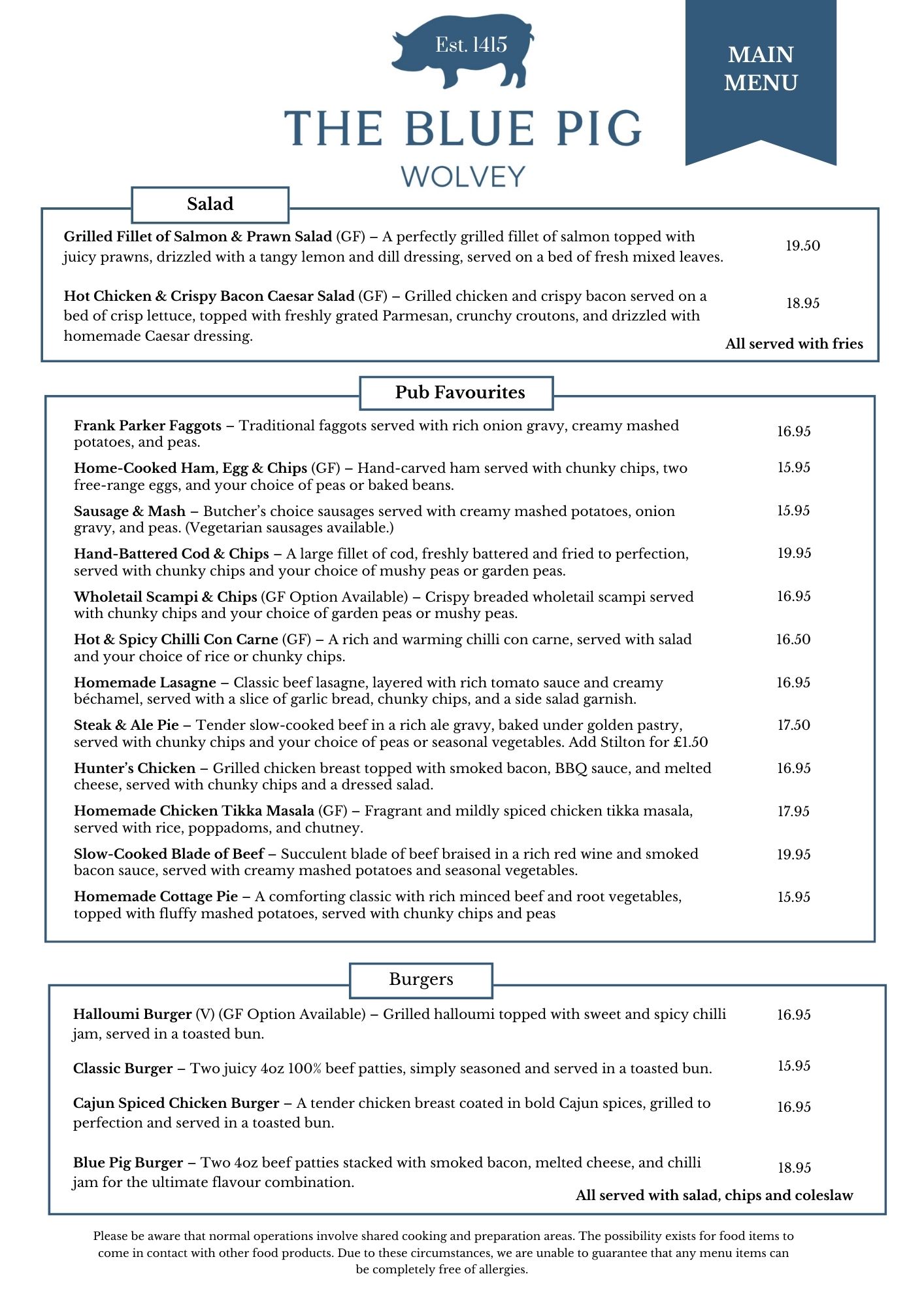 Menus at The Blue Pig Wolvey